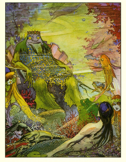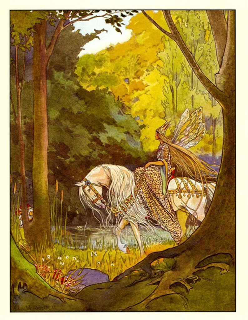 One day, the fairy queen rides past the mermaid pond and she is immediately in trouble: The mermaid king dives up out of the water and restrains her. He won’t release her until she gives him her daughter in marriage. But the queen would rather die than do the ogre this favor.