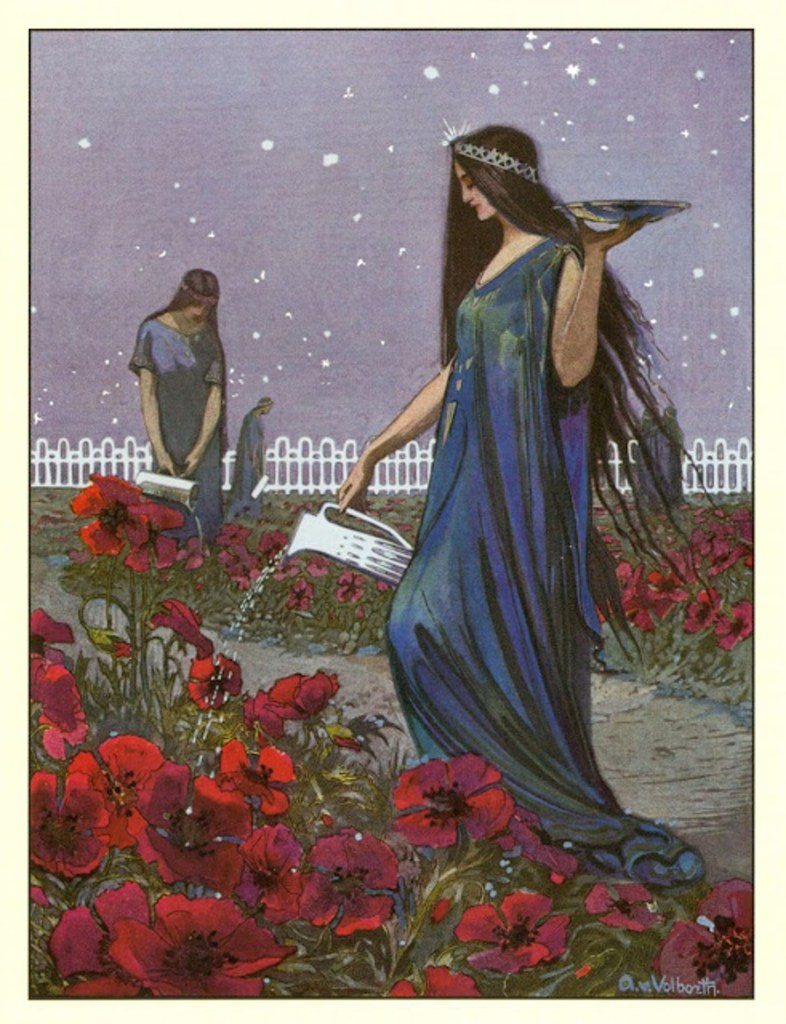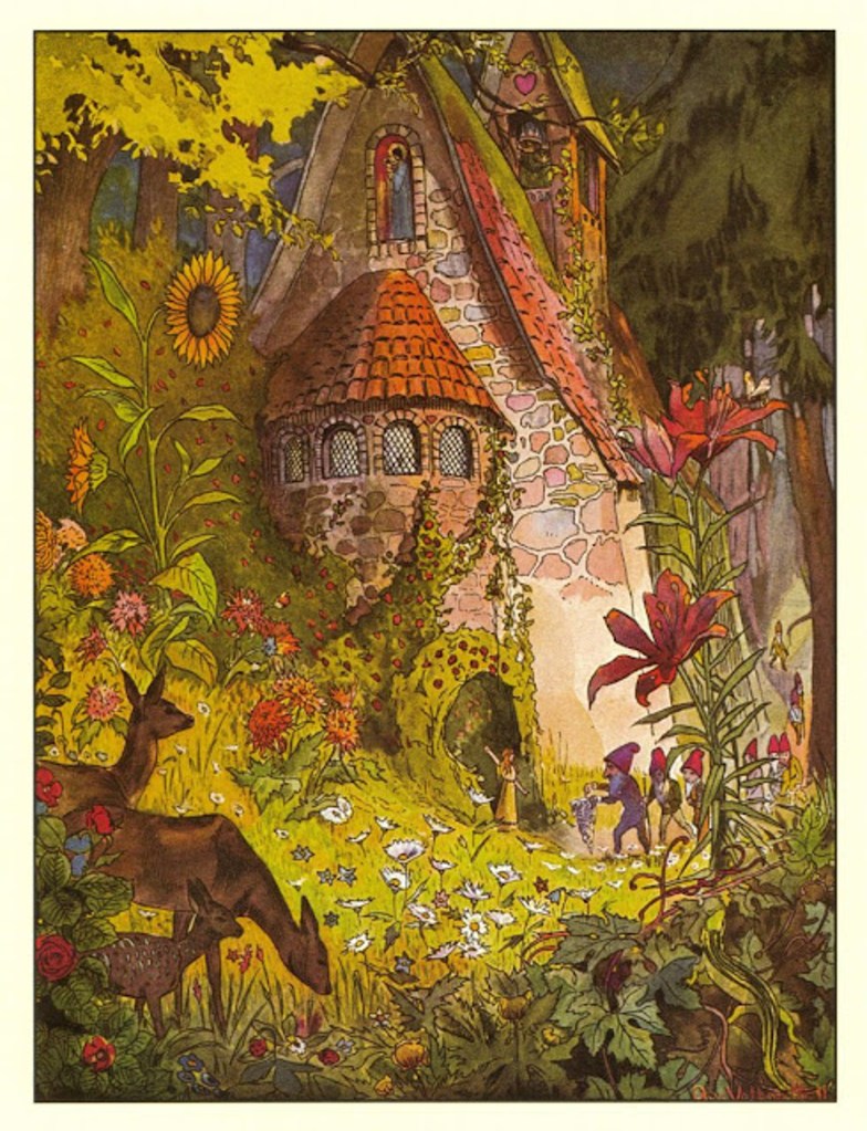 I love looking through old books especially for their wonderful illustrations and recently stumbled upon a gem that I want to share with you. The book is called Der Elfenraub from 1912 and is illustrated by Alexander von Volborth, If you like elves, gnomes and whimsical forest scenes like I do I feel sure that you will like these images as well. They are in the public domain and therefore you can feel free to use these pictures in your creative endeavors or just to enjoy looking at them.