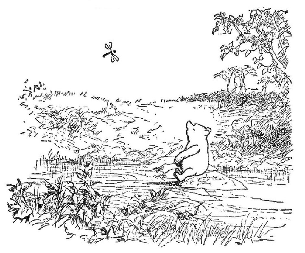 The illustrator for these books is E.H. Shepard, who was an illustrator and also showed many works in famous galleries and art institutions as a painter. In fact , the Pooh Bear was modeled after E.H. Shepard’s son’s stuffed bear called “Growler”.