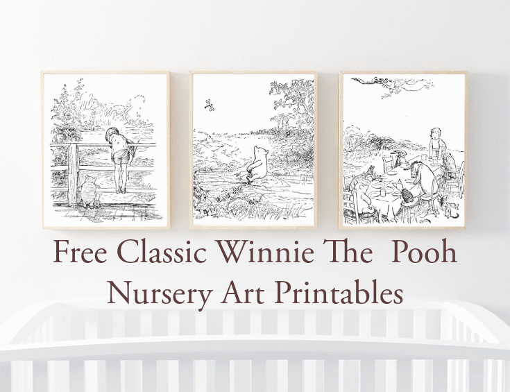 These images are from the classic Winnie The Pooh books by A.A. Milne called Winnie-the-Pooh (1926) and The House at Pooh Corner (1928), and are in the Public Domain. You can freely print these, or take them to your local print shop to be printed to your desired size and paper type. A.A. Milne wrote these books for his little boy, Christopher Robin. Did you know that the author based many of the classic characters in the book on Christopher Robin’s stuffed animals?