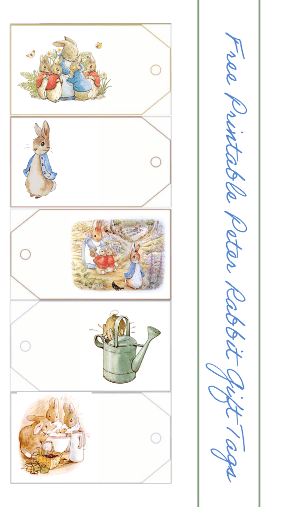 Birthday parties, baby showers or making crafts with your children, these adorable Peter Rabbit Gifts Tags are easy to print and cut out. The images are taken from Beatrix Potter’s Tales of Peter Rabbit and are in the Public Domain so you can feel free to use them for your personal projects.