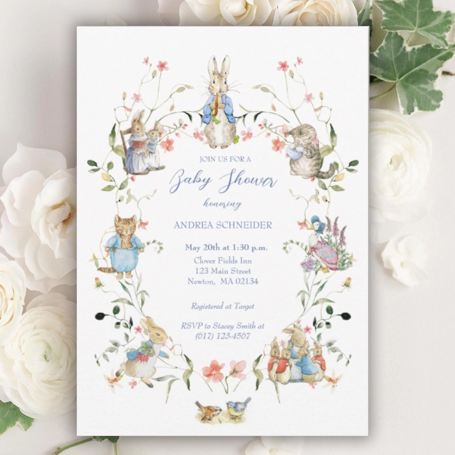 Beatrix Potter’s The Tale of Peter Rabbit is a timeless and classic theme for your baby shower. I love the illustrations from all of the tales and the inhabitants of this English Cottage Garden and Forest setting, including Benjamin Bunny, Flopsy, Mopsy and Cottontail, Jemima Puddle Duck, Tom Kitten and the many other woodland friends too. While I can appreciate the AI generated imagery of Beatrix Potter’s characters that I see in many products today, I love the imagery that I grew up with. In my Zazzle Shop there are several beautiful classic Baby Shower designs featuring vintage imagery and style. If you like any of these collections for your shower and purchase a product, I will receive a very small percentage with no additional cost to you and of course I greatly appreciate it. Below are some of my most popular Beatrix Potter inspired baby shower collections.