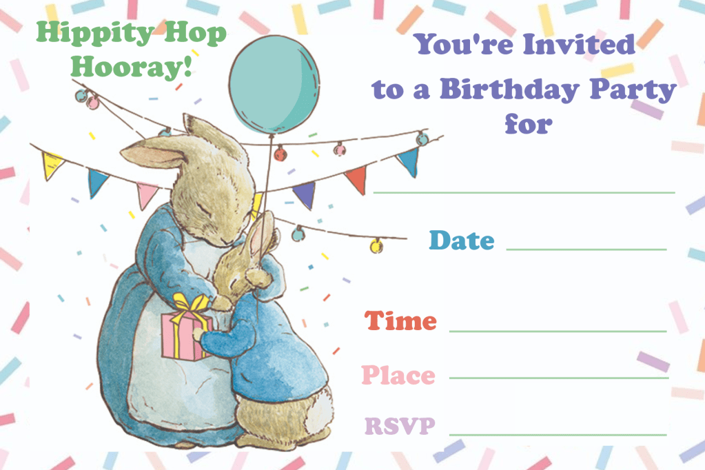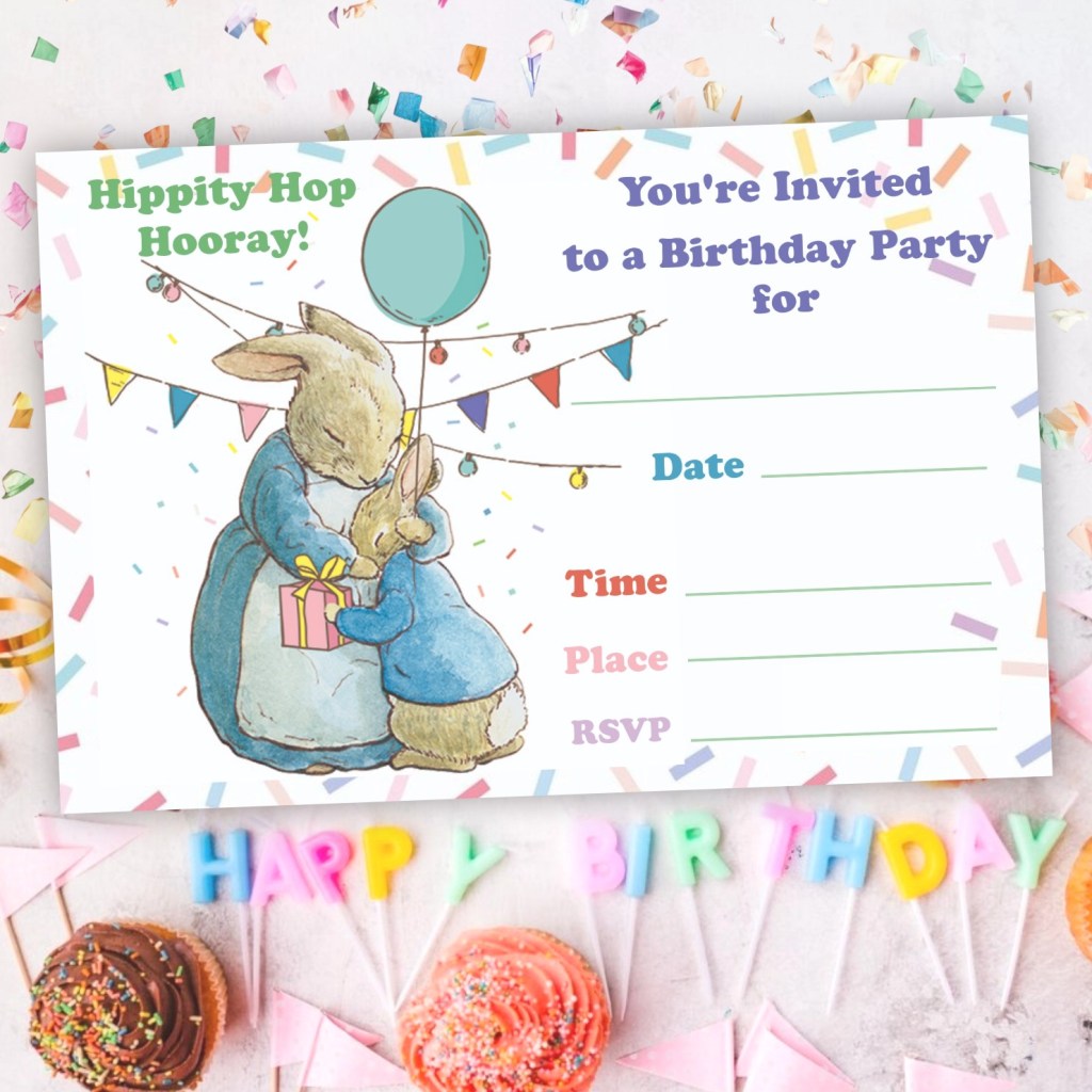 Make your child’s birthday celebration truly unforgettable with an invitation that’s as sweet and adventurous as Peter Rabbit himself!