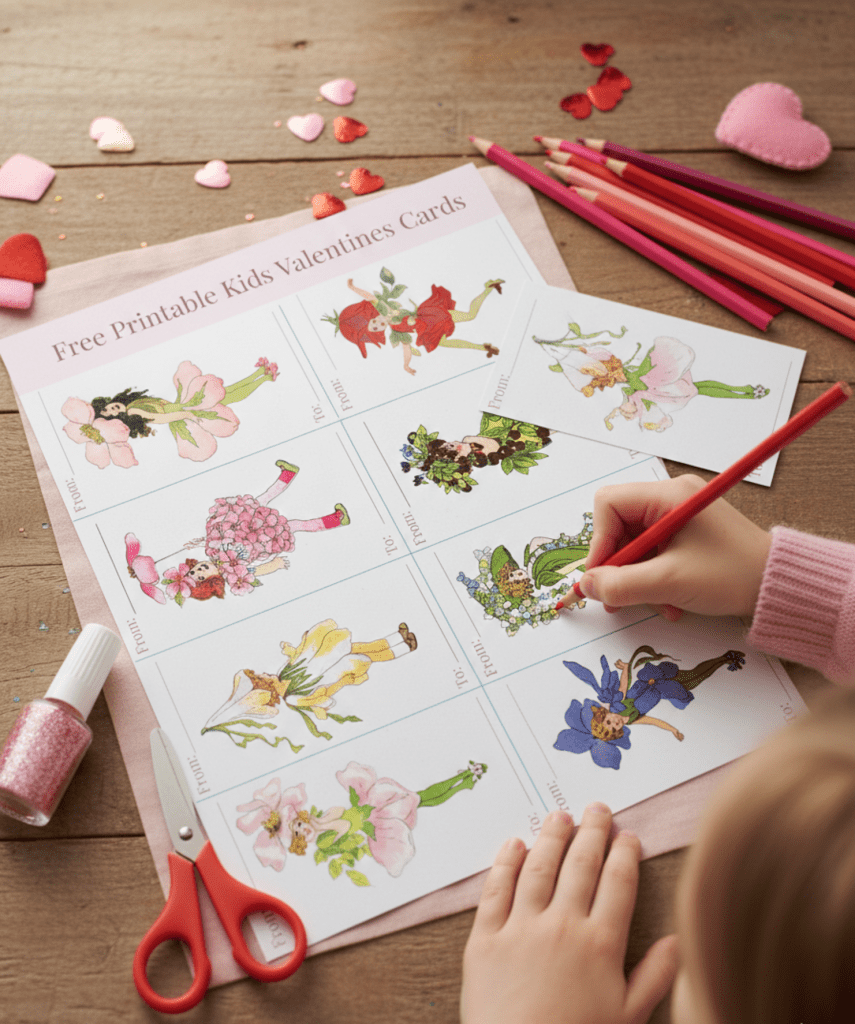 Valentine’s Day is just around the corner, and what better way to celebrate than with a touch of timeless charm and a fun activity for the whole family? This year, I am making it easy and beautiful with two free printable sheets of vintage-inspired Valentine’s Day cards featuring the adorable Flower Children from Elizabeth Gordon’s beloved 1910 book.